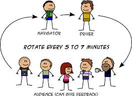 Coding Dojo is a sort of workshop where everyone participates. There's a driver and a copilot (like in pair programming) and audience. Every five minutes (or any other agreed interval) people change places. Copilot becomes driver, driver goes to audience and someone from the audience becomes the new copilot. There ought to be one sensei also, but we didn't have one.